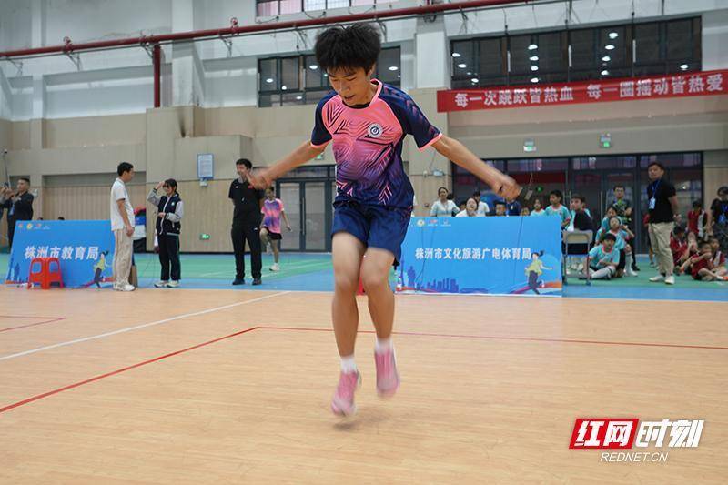 红网时刻新闻10月14日讯(记者 聂千川 苏莉雅)10月13日,株洲市第十五届运动会(青少年组)暨2025株洲市中小学生运动会跳绳比赛在市二中莲花中学激情启幕。来自全市的13支代表队、600余名青少年选手齐聚赛场,伴随着清脆的绳响,选手们纵身跃动,翻飞的跳绳勾勒出灵动弧线,昂扬的身姿尽显青春活力,一场兼具速度与节奏感的竞技盛宴就此展开。